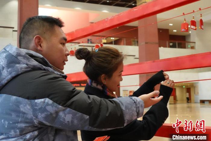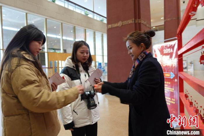 當(dāng)日上午,西藏博物館中央大廳聚集了許多參加現(xiàn)場活動的游客。游客以隨機(jī)抽福袋、領(lǐng)獎(jiǎng)品的形式參與活動。參與者紛紛表示在新年的第一天開展這樣的活動很有意義。針對元旦期間來館參觀的游客,西藏博物館還制作有館藏文物元素的主題紀(jì)念賀卡供游客留念。