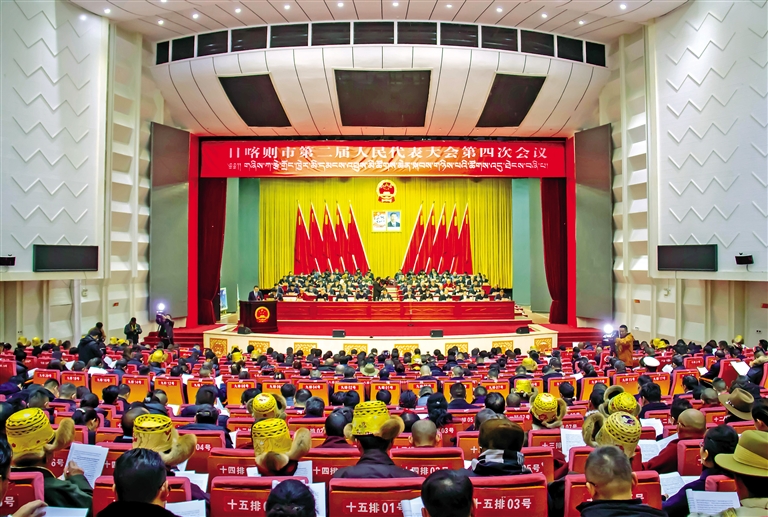 圖為日喀則市第二屆人民代表大會第四次會議開幕現場。