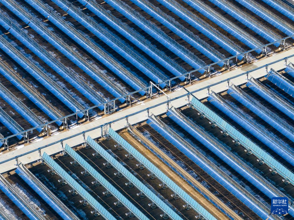 這是申扎縣城集中供暖項(xiàng)目太陽能集熱場局部(1月6日攝)。新華社記者 曹檳 攝