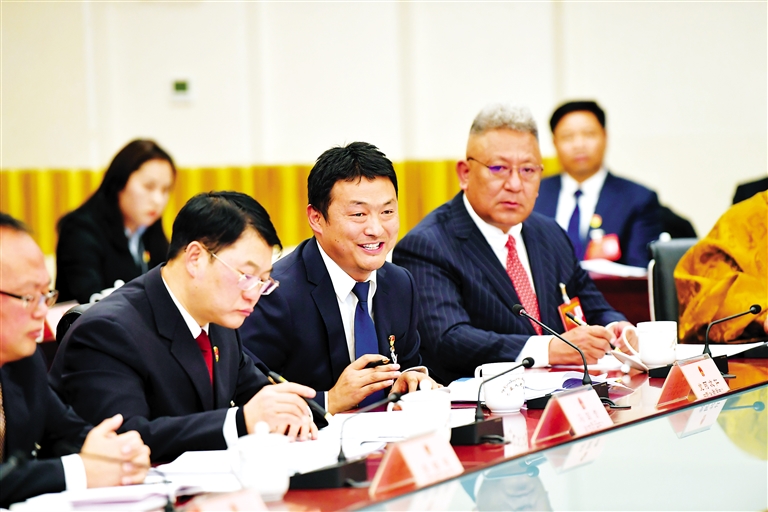 圖為出席西藏自治區十二屆人大二次會議的那曲代表團分組審議現場。記者 旦增西旦 攝