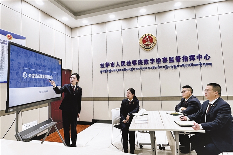 拉薩市人民檢察院檢察官通過數字檢察監督平臺對失信懲戒不當線索進行人工研判。
