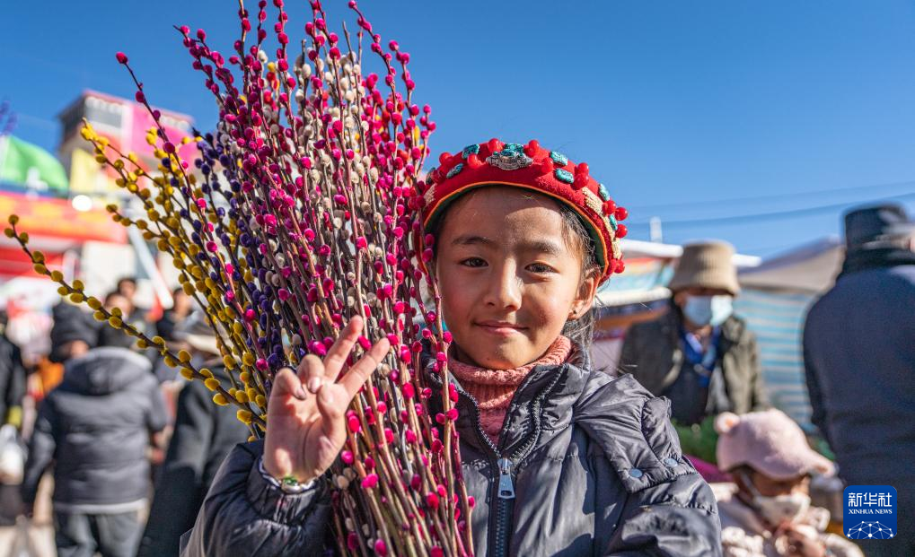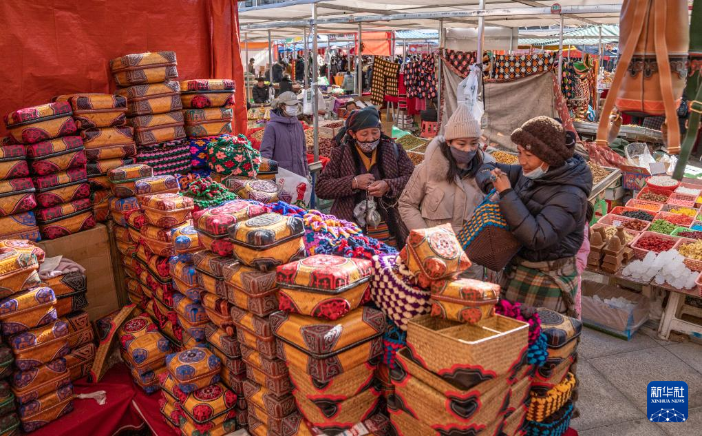 1月9日,商戶在推銷“巴珠”(藏族頭飾)。新華社發(丁增尼達 攝)