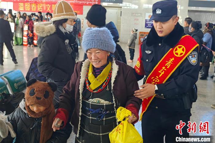 26日,為期40天的2024年春運正式拉開帷幕。春運首日,拉薩鐵路警方在西藏各大客運火車站同步開展“平安回家路、鐵警在身邊”為民實踐活動,組織黨員民警先鋒隊、青年民警突擊隊在火車站區開展志愿幫扶、反詐宣傳等活動。