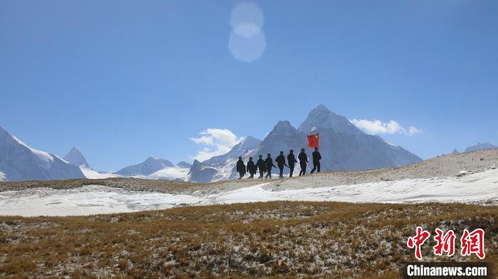 圖為西藏移民管理警察扛旗巡邏邊境。 卿光強 攝