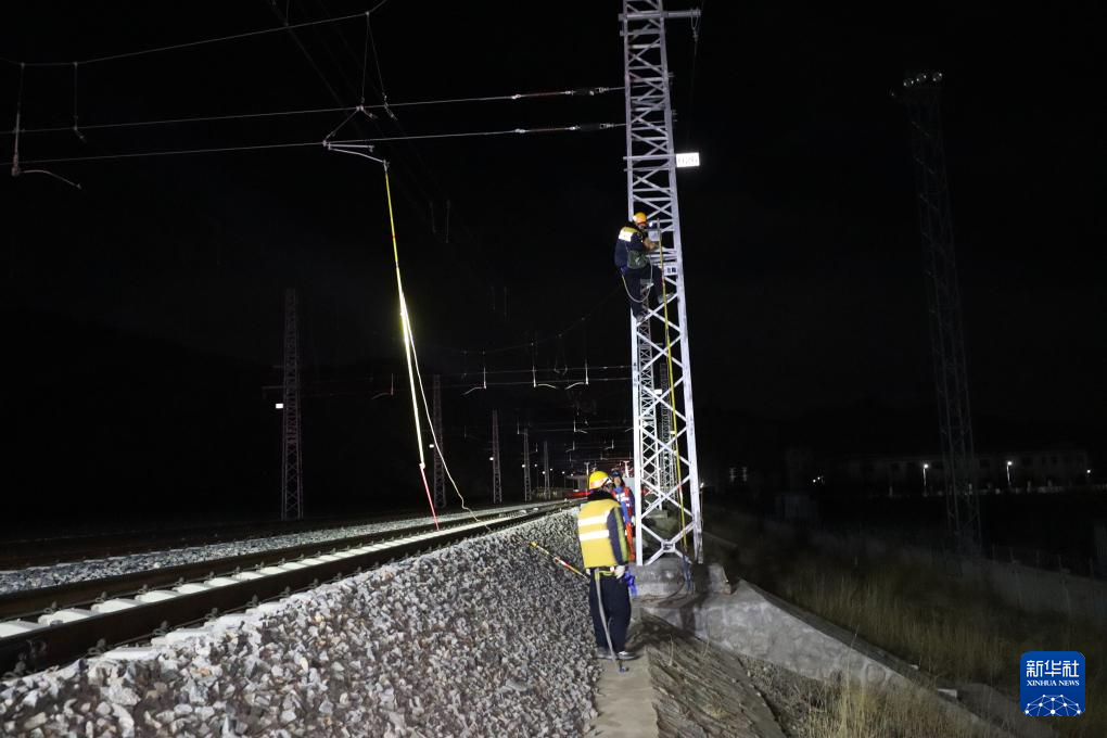 接觸網源源不斷地為電力火車提供電力,就像電氣化鐵路的“血管”?!拔覀兙褪歉咴姎饣F路的醫生,每天夜里,為它的‘血管’做一場細致的手術,保證接觸網安全暢通。”李積王說,細致的夜間作業確保了拉林鐵路在春運期間能夠安全、高效地運行。