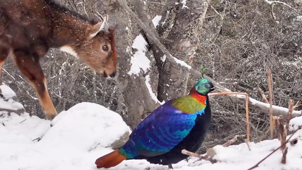 近日,“新春走基層”記者在中國(guó)與不丹交界的西藏洛扎縣拉康鎮(zhèn),拍到了喜馬拉雅斑羚和棕尾虹雉兩種珍稀野生動(dòng)物同框的畫(huà)面。喜馬拉雅斑羚和棕尾虹雉均是國(guó)家一級(jí)保護(hù)動(dòng)物。