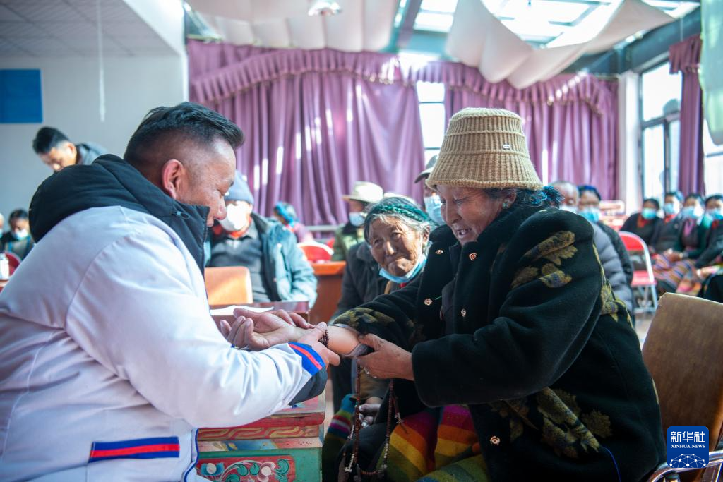 1月27日,加央醫生在給曲珍老人把脈。新華社記者 劉文博 攝