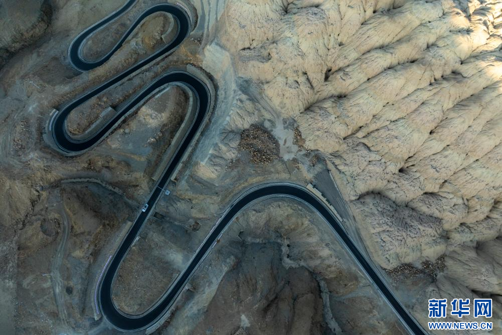 1月31日拍攝的札達土林和公路(無人機照片)。新華網 旦增努布 攝
