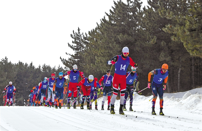 2月1日,第十四屆全國冬季運動會滑雪登山項目公開組混合接力比賽在內蒙古扎蘭屯市金龍山滑雪場舉行。
