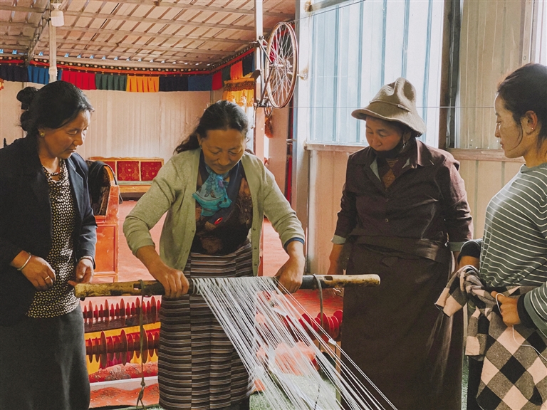 老師在指導(dǎo)工人紡織。圖由卓瑪提供