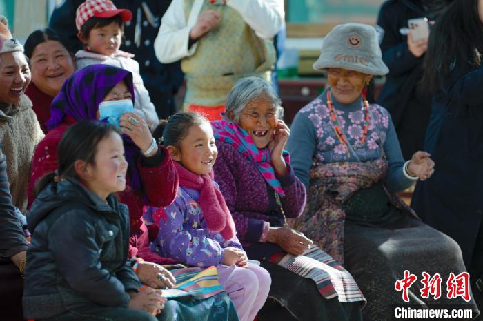 圖為阿里地區扎西崗鄉群眾正在觀看文藝表演。 蔣美靈 攝