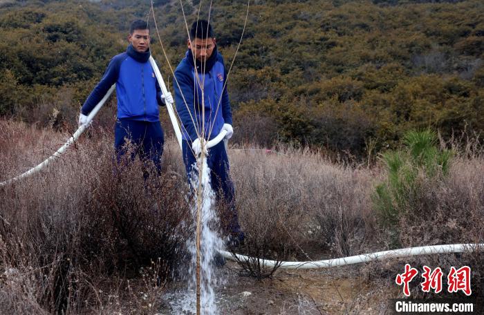 圖為林芝市巴宜區森林消防中隊澆水灌溉。巴宜區森林消防中隊供圖