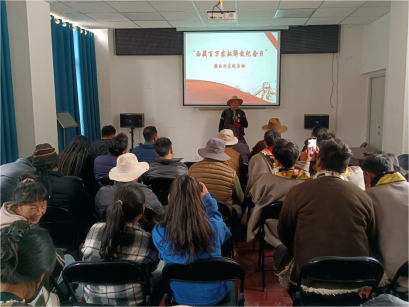 活動從上午11時開始,村民們聚集在村委會的旗桿下,唱著雄壯的義勇軍進行曲,冉冉升起鮮艷的五星紅旗。隨后駐村工作隊為大家播放了民主改革紀錄片《跨越》《朗生互助組》。播放結束后,村里的3名老黨員先后以親身經歷講述新舊西藏的深刻變化,教育大家一定要珍惜今天的幸福生活,聽黨話、感黨恩、跟黨走。嘎瑪頓旦今年74歲,是一名老黨員,他身著節日盛裝,佩戴“光榮在黨50年”紀念章,自信地向群眾講述,“舊西藏,強白村要給政府上很重的稅,有7戶人家每年還上要交牦牛,日子過得甭提有多苦、多難。現在政府不收一分錢,每年給大家發那么多的政策補助,路修通了,房子修得漂亮了,吃的穿的都好,我們都是親眼所見的,所以,沒有理由不感謝共產黨。”