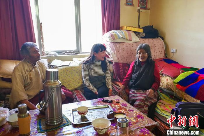 圖為全國人大代表、西藏自治區社科院研究員、人類學者白瑪措(中)在西藏那曲嘉黎縣農牧民家中進行訪談。受訪者供圖
