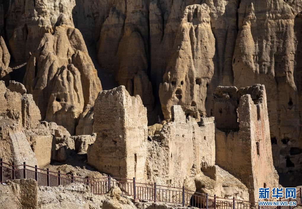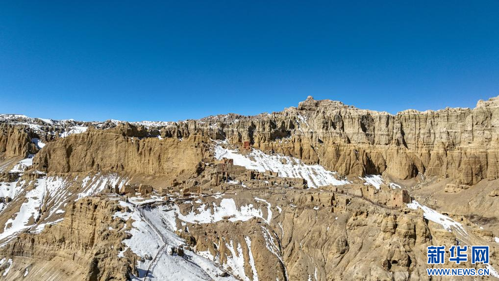 達巴遺址位于西藏阿里地區札達縣境內,其主要建筑分布在兩座山脊之上,整個遺址共有洞穴200余處,且有獨立的碉樓、寺廟建筑遺跡、居民窯洞等建筑,在白雪的映襯下,顯得格外雄渾而神秘。
