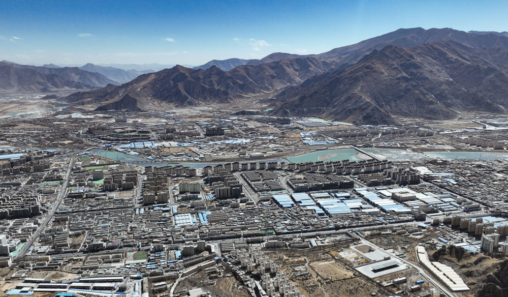 拉薩市堆龍德慶區嘎東社區(2024年3月14日攝,無人機照片)。新華社記者 晉美多吉 攝