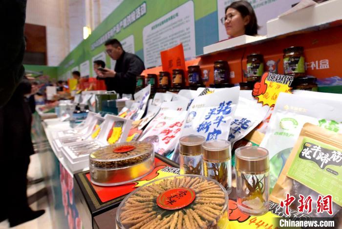 圖為高原農特產品產銷對接活動現場,企業展示自己的產品。李林 攝