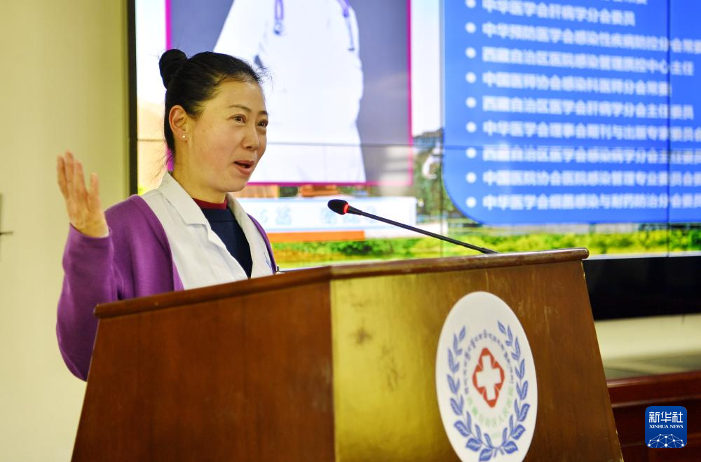 4月3日,北京協和醫院主任醫師龍笑在西藏自治區人民醫院做學術報告。新華社記者 張汝鋒 攝