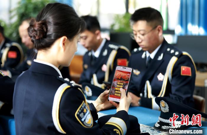 圖為移民管理警察秦欣欣通過中華英烈網祭奠公安英烈。肖富貴 攝