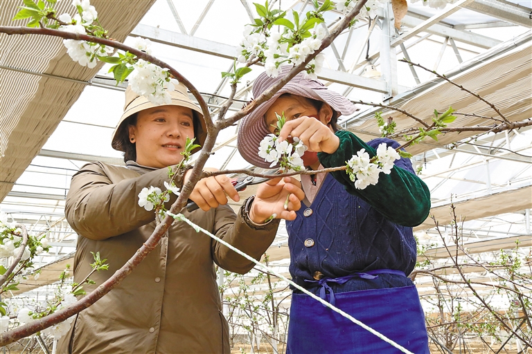 右圖為尼木縣“點對點”干部德吉(左一)向群眾傳授車厘子種植技術。(圖片由中共尼木縣委宣傳部提供)