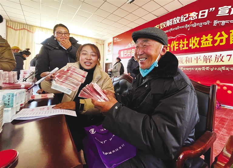 拉薩市城關區納金鄉嘎巴村分紅儀式現場。 西藏日報記者 旦增蘭澤 攝