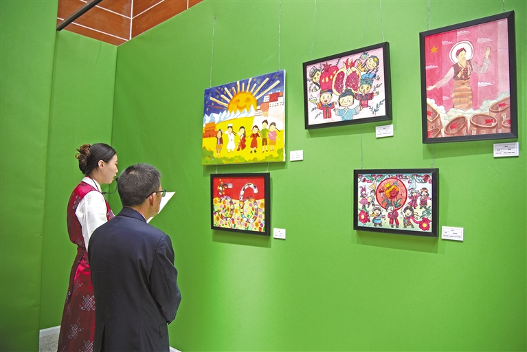 28日,“高原紅石榴 共筑中國夢”第五屆民族團結書法、美術、攝影、微視頻大賽作品展開幕式暨頒獎典禮在西藏自然科學博物館舉行。此次展覽將持續至5月8日。