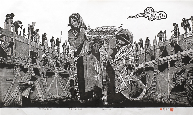 美術二等獎作品《鑄牢新家園》。 作者 斯單巴