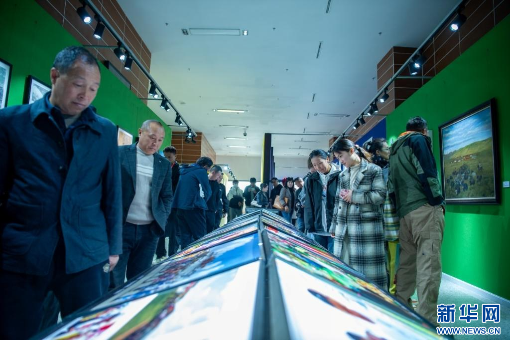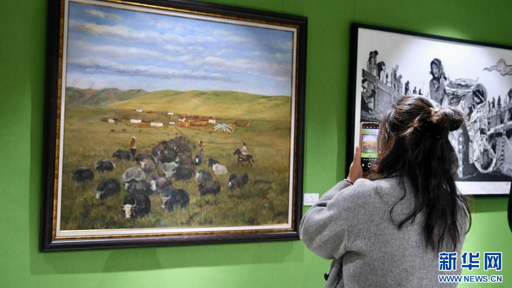 4月28日,第五屆民族團結書法、美術、攝影、微視頻大賽作品展現場。新華網 旦增努布 攝