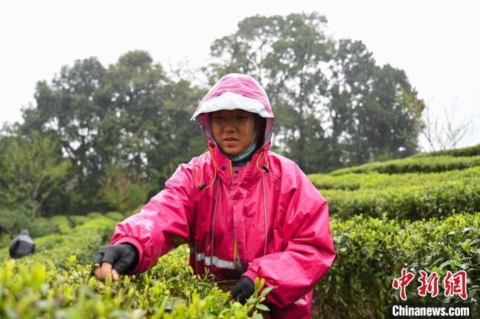 圖為墨脫茶農雨中采茶。趙朗 攝