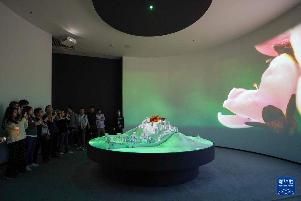 5月11日,觀眾在展出現場參觀拍攝布達拉宮模型。新華社記者 李博 攝