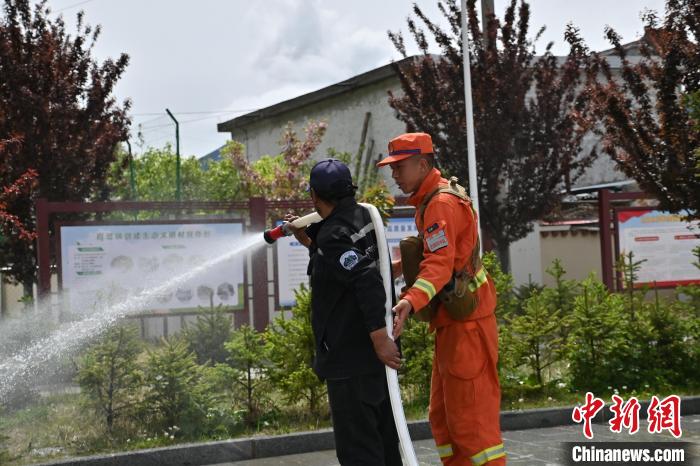 圖為護(hù)林員體驗(yàn)滅火裝備。西繞拉翁 攝