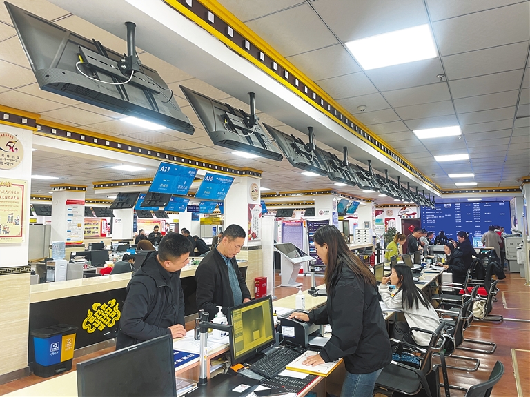 窗口是服務群眾的第一線。走進山南市政務服務中心,只見在各服務窗口前辦理業務的群眾依次排隊、秩序井然,工作人員有條不紊地為群眾提供貼心服務,耐心細致地為群眾答疑解惑。