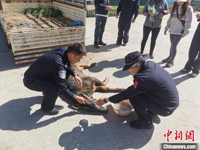 現場檢查發現,“四不像”后腿受傷、身體虛弱,無法自行離開,巡邏民警隨即疏導交通,組織警力將其帶回派出所處理傷口、投喂水食,并及時移交米林市林草局進一步救治。