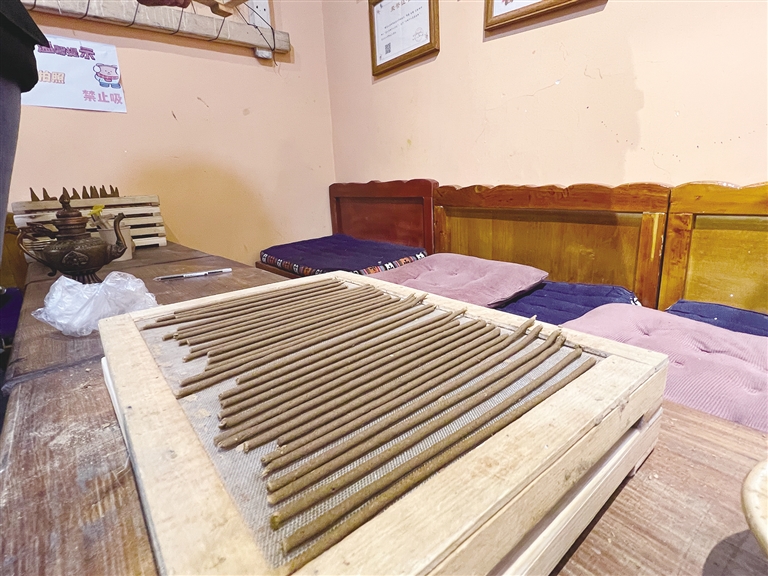 2018年,旦增的唐卡非遺文創(chuàng)體驗(yàn)館在八廓街開業(yè)。在旦增看來,拉薩文化底蘊(yùn)深厚,旅游業(yè)發(fā)達(dá),每天都有來自世界各地的人匯聚在這里,而八廓街作為拉薩古城的核心區(qū),對(duì)于文化傳播非常有益。目前,店內(nèi)可體驗(yàn)唐卡繪制、藏香制作,每天可接待40至50位客人。