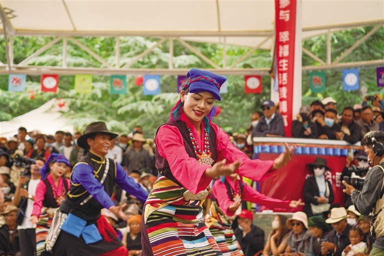 從傳統民族舞到現代創新舞,每支舞蹈都蘊含著藏族人民對家鄉的熱愛和對美好生活的向往。比賽中,參賽人員身著特色民族服飾,伴隨著優美激昂的旋律,踩著歡快的節拍,以飽滿的熱情和精湛的舞技,演繹了一場精彩而富有特色地域文化的廣場舞盛宴,凸顯了非物質文化遺產的傳承創新發展。