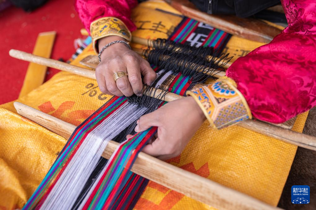 在那曲市雙湖縣,農(nóng)牧民選手在參加手工編織技藝比賽(6月20日攝)。新華社記者 丁增尼達 攝