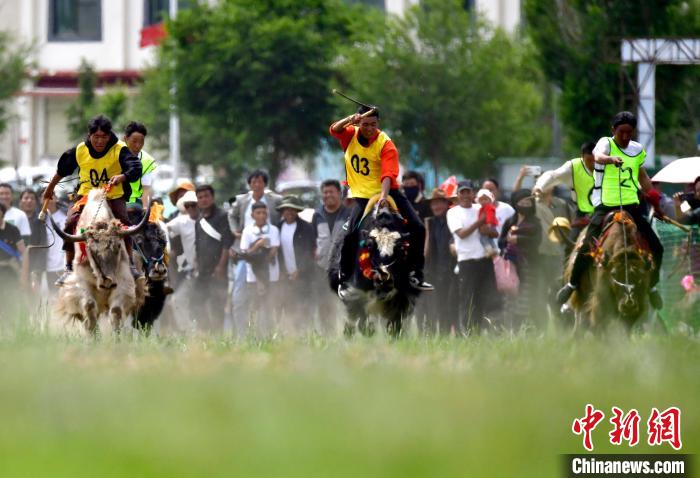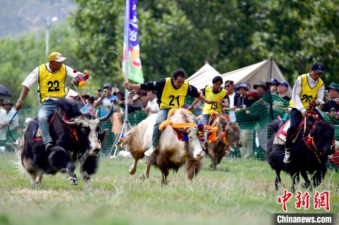 牦牛被譽為“高原之舟”,賽牦牛是藏族的傳統體育項目。比賽現場,騎手們精神抖擻,待于起跑線;發令后即馭牛疾奔,以先到終點者為勝。賽場上競爭激烈;賽場外民眾也為騎手們加油歡呼,比賽熱鬧非凡。