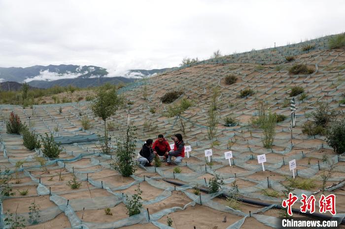 山南市全國防沙治沙綜合示范區(桑耶核心區),中國科學院成都山地所科研人員現場查看并交流。中新網記者孫自法攝