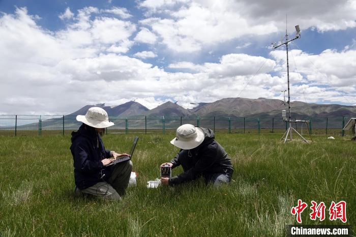 中國科學院申扎高寒草原與濕地生態系統觀測試驗站(申扎站)高寒濕地觀測試驗場,科研人員采集相關觀測數據。中新網記者孫自法攝