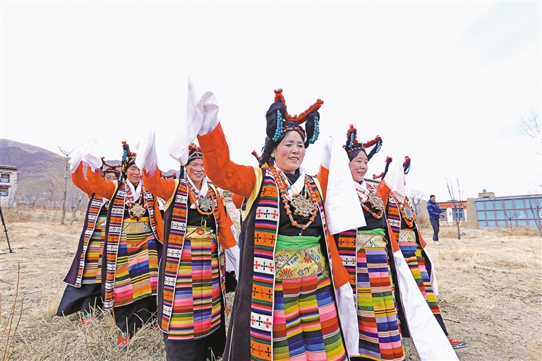 “如今,這支隊(duì)伍已發(fā)展到20多名成員,都是當(dāng)?shù)厝罕姟K囆g(shù)隊(duì)經(jīng)常受邀參加各種大小晚會(huì)、重要節(jié)日演出和赴區(qū)內(nèi)外非遺展演等,其影響力和傳播力不斷提升,特別是甲瑪諧欽《和親路》受到廣泛歡迎。”甲瑪鄉(xiāng)工作人員德吉卓嘎說。