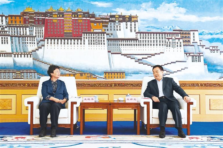 8日,自治區黨委書記王君正在拉薩與人力資源和社會保障部黨組書記、部長王曉萍一行座談。