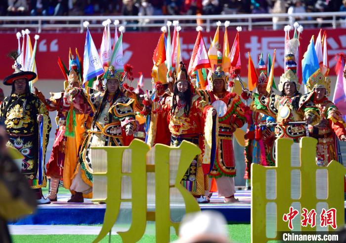 8月10日,2024年那曲恰青賽馬節(jié)暨第三屆“鄉(xiāng)村振興 那曲奮進(jìn)”活動(dòng)開(kāi)幕式在那曲市賽馬場(chǎng)舉行,精彩的文藝歌舞、馬術(shù)表演等展示著羌塘草原上的無(wú)窮魅力和活力。圖為開(kāi)幕式文藝表演現(xiàn)場(chǎng)。中新社記者 李林 攝