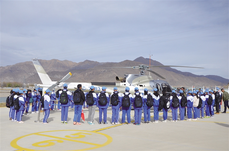 拉薩市中學(xué)生開展“游學(xué)幸福新拉薩 共筑美麗中國夢”主題研學(xué)實踐教育活動,參觀高原直升機(jī)。