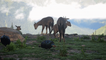 清晨,喜馬拉雅斑羚、棕尾虹雉、珠頸斑鳩等各類動物出現在山間的一處平臺上,吸引周邊的游人欣賞這自然之美。
