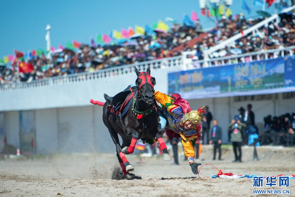 8月10日,2024年恰青賽馬節開幕式馬術表演。新華網 旦增努布 攝