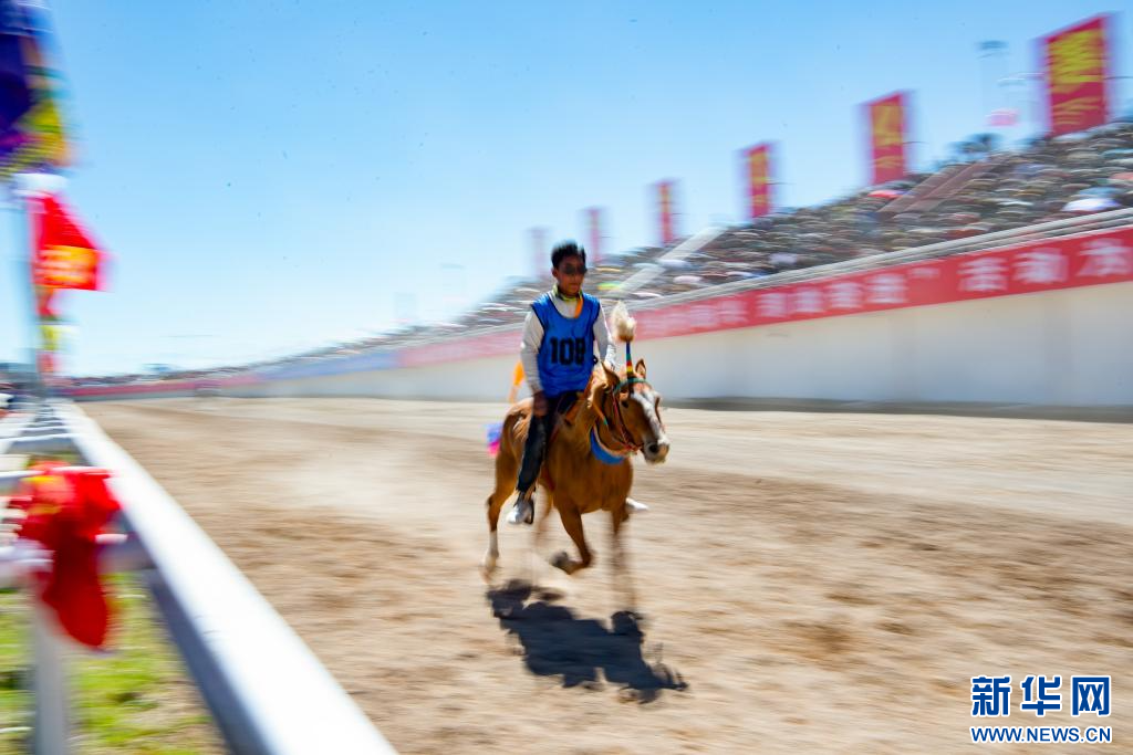8月11日,騎手在場名馬冠軍比賽中。新華網 旦增努布 攝