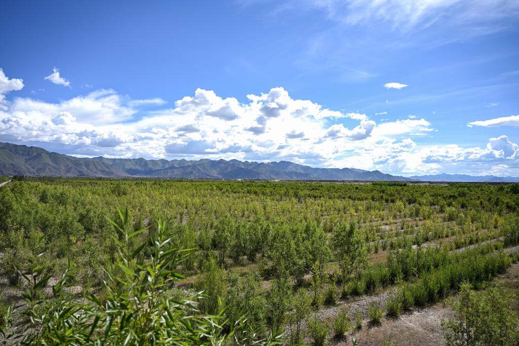 2024年9月1日,在雅江北岸南木林生態示范區,郁郁蔥蔥的林木和湛藍的天空相映成景。新華社記者孫瑞博 攝