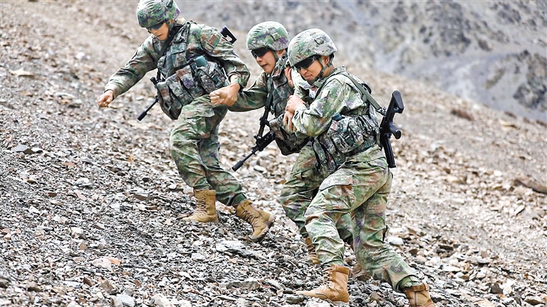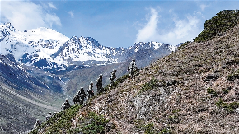 吉隆邊防連官兵在巡邏途中。崔運紅 攝