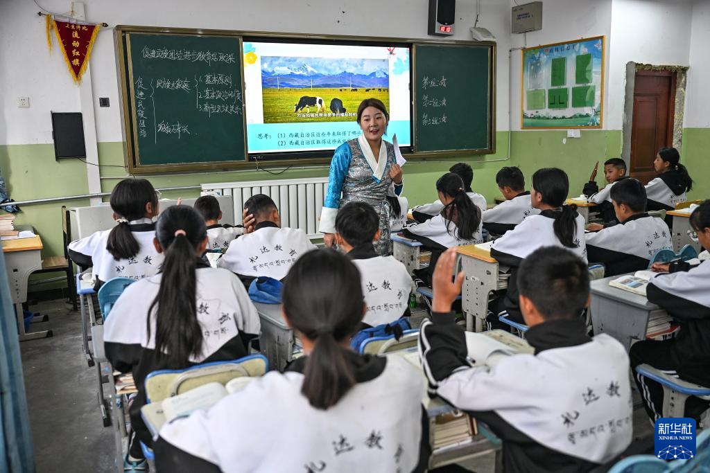 走進西藏阿里地區札達縣九年一貫制學校,初三(2)班的孩子正在上民族團結主題思政課。“誰能講一個關于愛國的故事?”老師次仁曲加問。孩子們思索片刻,爭搶著舉手,扎西格堆第一個站起來回答:“江孜保衛戰!面對侵略者數次進攻,雖然彈盡糧絕,各族同胞仍堅持戰斗、寧死不屈,展現出團結一心、眾志成城的精神……”