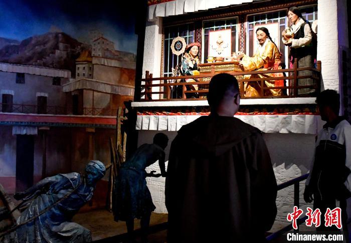 圖為9月14日,觀眾在西藏百萬農奴解放紀念館日喀則分館內看展覽。中新社記者 李林 攝